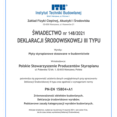 W tym roku firma Paneltech otrzymała od Polskiego Stowarzyszenia Producentów Styropianu Świadectwo Deklaracji Środowiskowej III typu na płyty styropianowe!