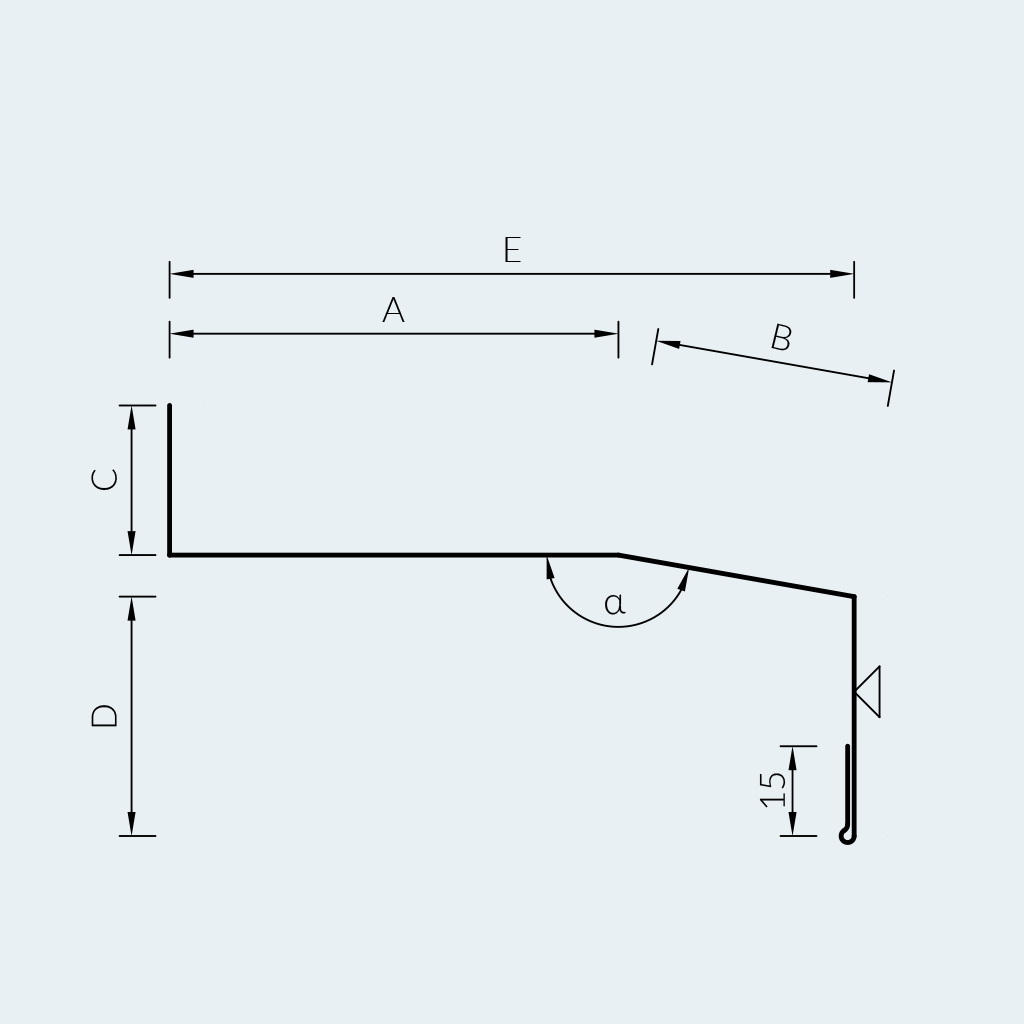 Oferujemy okapniki ścienne oraz cokołu w różnych długościach oraz kształtach. Typowa grubość blachy wynosi 0,50mm, ale możemy wykonać również obróbki o grubości 0,75mm.