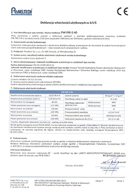 | rdzeń izolacyjny | skalna, niepalna wełna mineralna w układzie włókien lamelowym o gęstości 85 kg/m3 (PWW-S lite) oraz 100 kg/m3 (PWW-S) | ||||||||