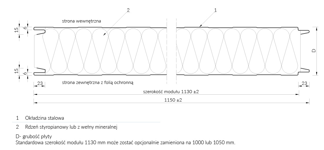| szerokość modularna [mm] | 1130 (opcjonalnie 1000 lub 1050) | ||||||||