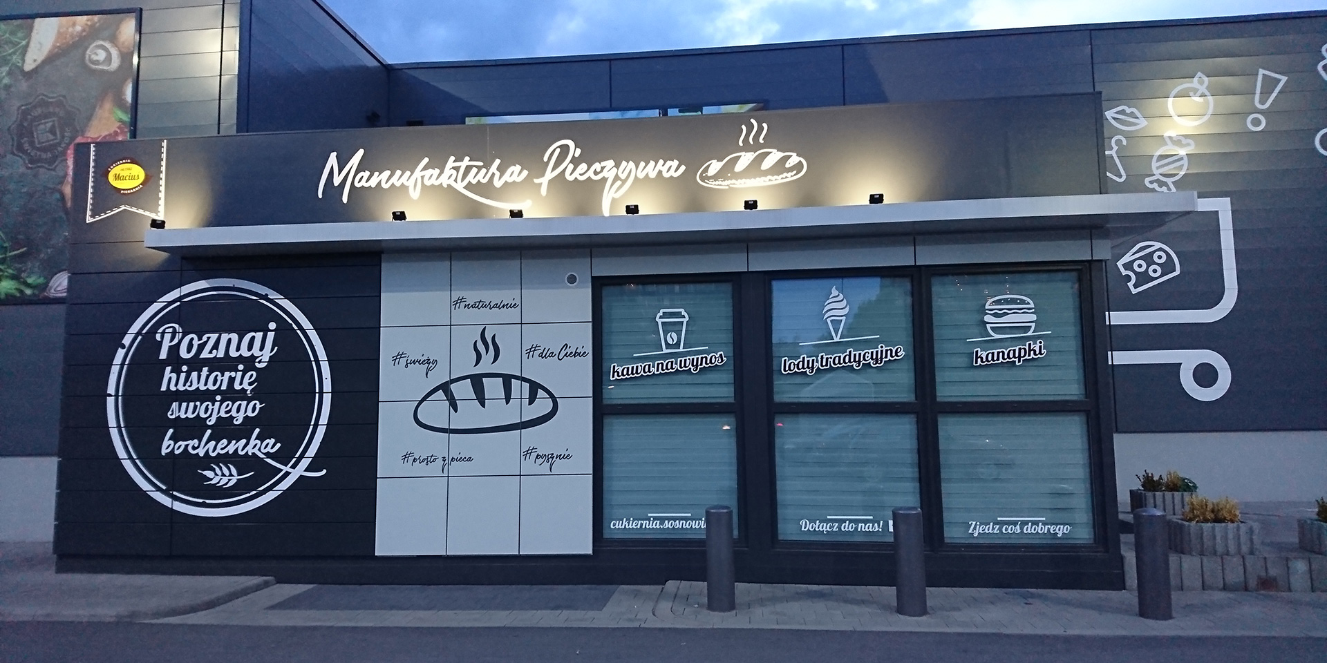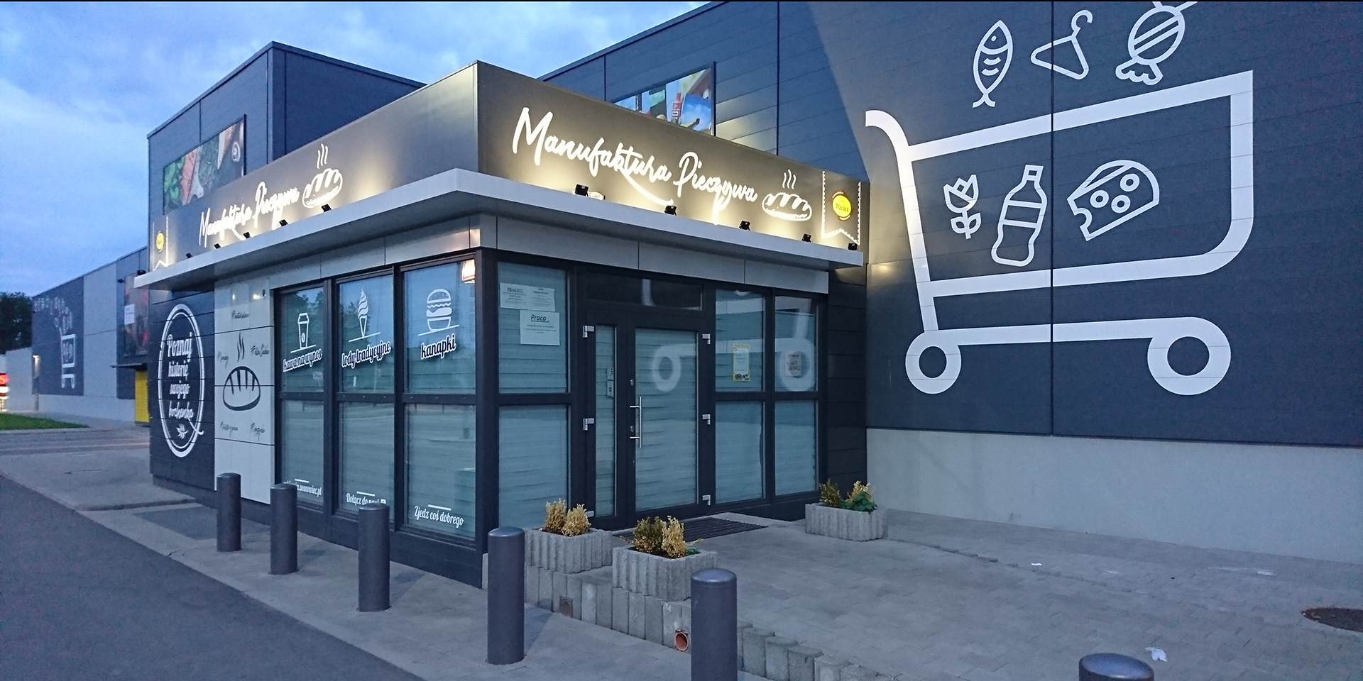 Opis: Przedstawiamy piekarnie Manufaktury Pieczywa, przy budowie której zastosowane zostały kasetony elewacyjne Paneltech w kolorach 7016 oraz 7035.