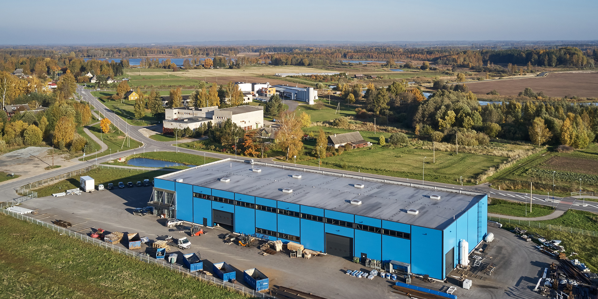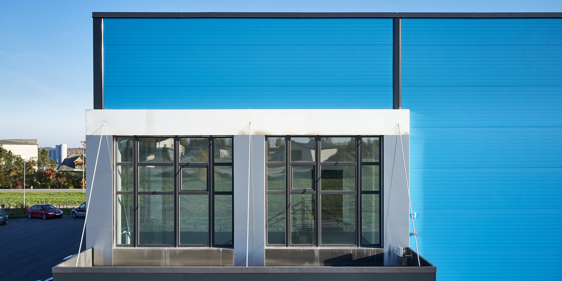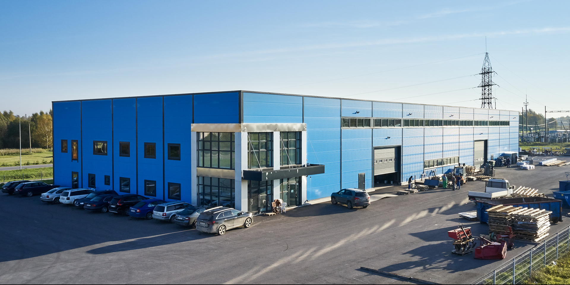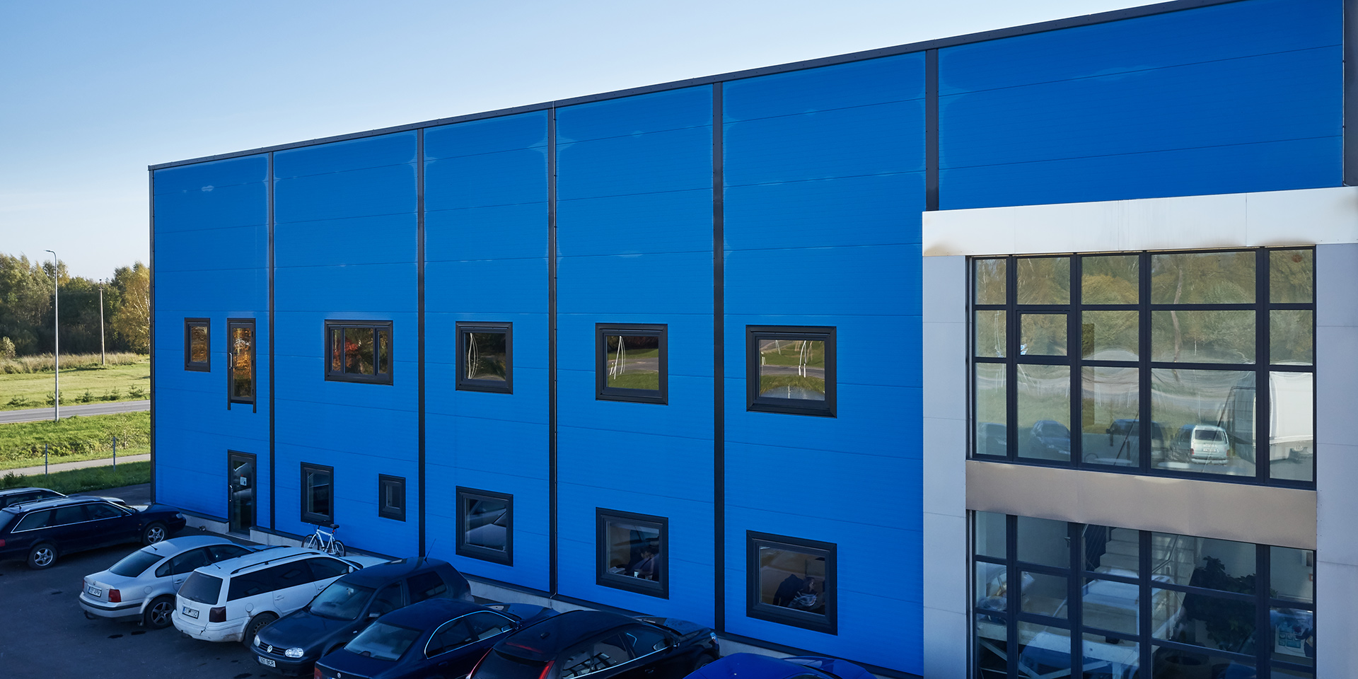 Opis: Hala produkcyjna firmy Baltic Steelarc wykonana z płyt warstwowych ściennych PW PIR-S (widoczny łącznik) o grubości 120 mm. W tej realizacji zastosowano płyty w kolorze RAL 5012 o profilacji liniowej (L). Płyty zamontowano w układzie poziomym.