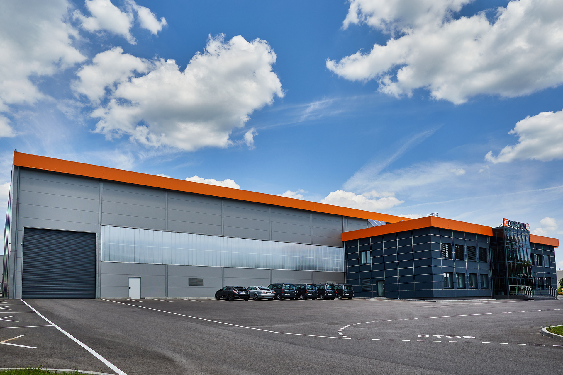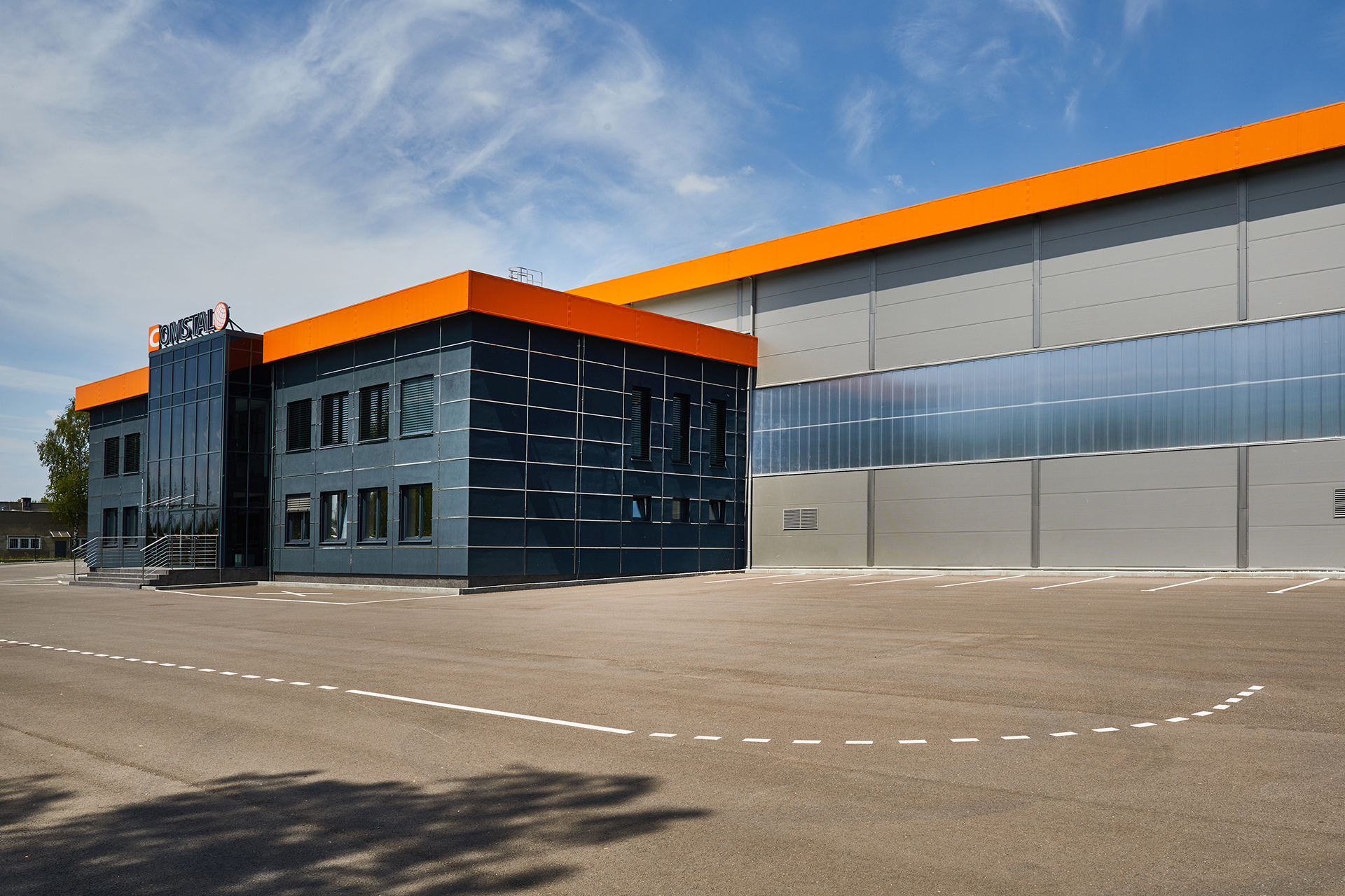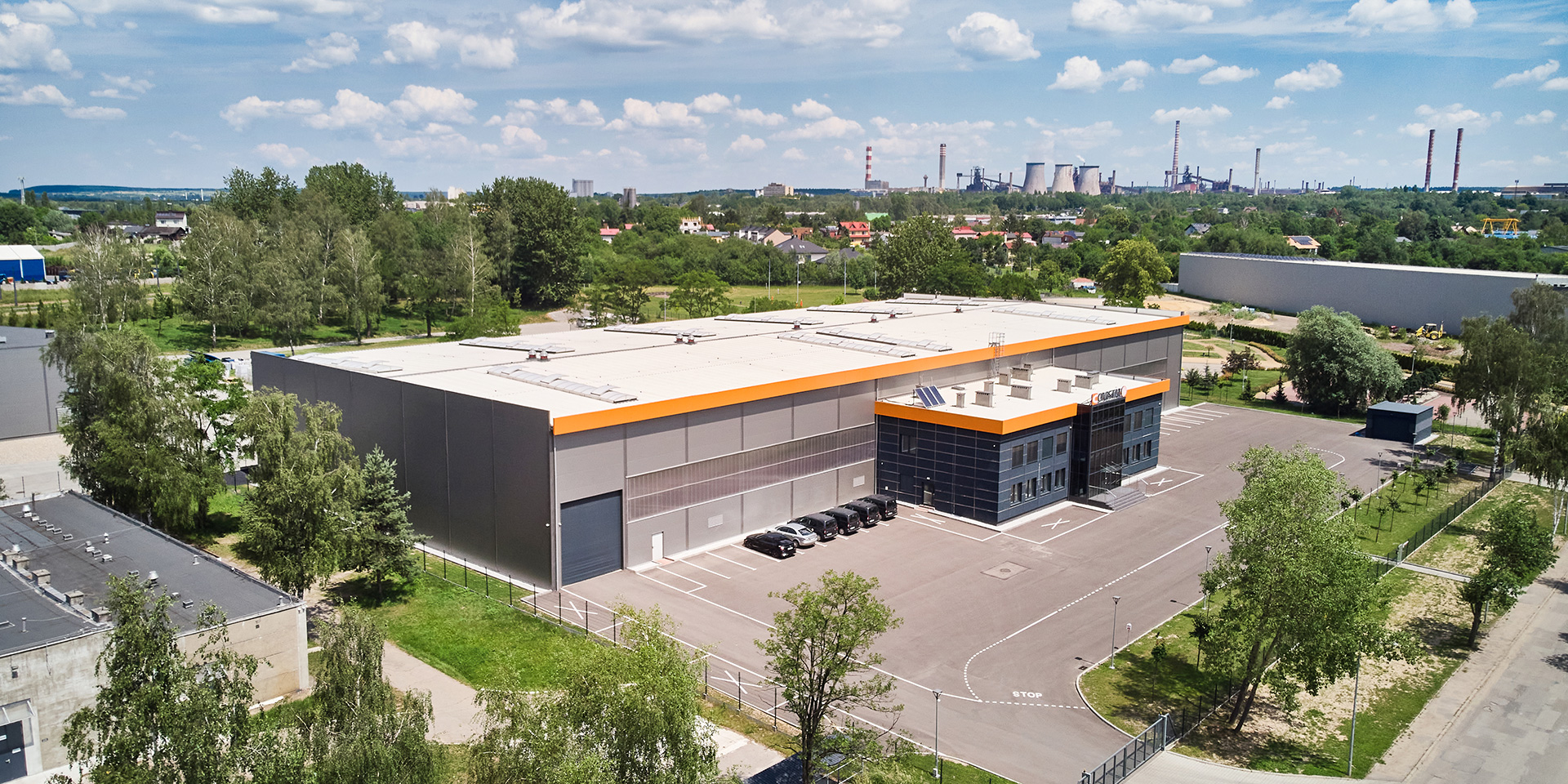 Opis: Hala produkcyjna firmy Comstal znajdująca się w Dąbrowie Gorniczej. Na ścianach obiektu zamontowane zostały płyty warstwowe PW PIR-S Paneltech o grubości 60mm oraz 120 mm w kolorach RAL 2011 oraz 9007. Dach natomiast został wykonany z płyt warstwowcyh PW PUR-D Paneltech o grubości 120mm w kolorze RAL 9010.