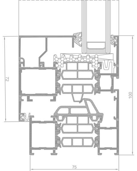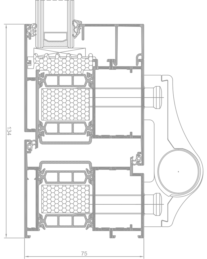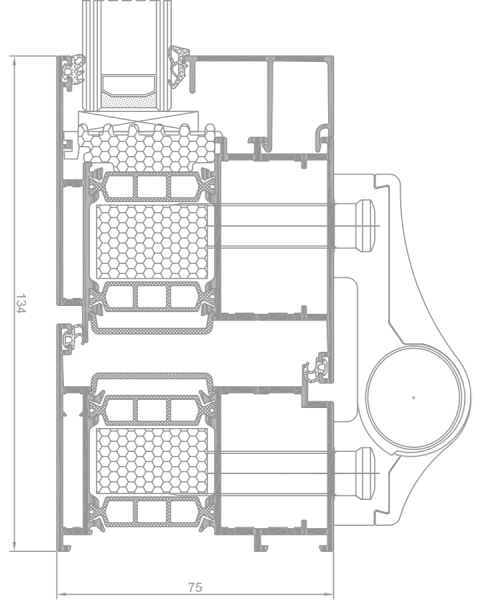 Głębokość ościeżnic okiennych i profili do zabudów stałych to 75mm,